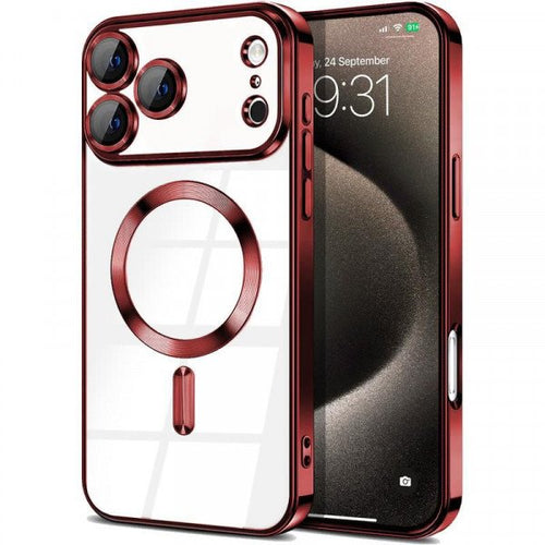 Apple iPhone 17 Pro Max - Premium Chrome Design Transparent Magnetic Ring Case with Camera Protection - RED